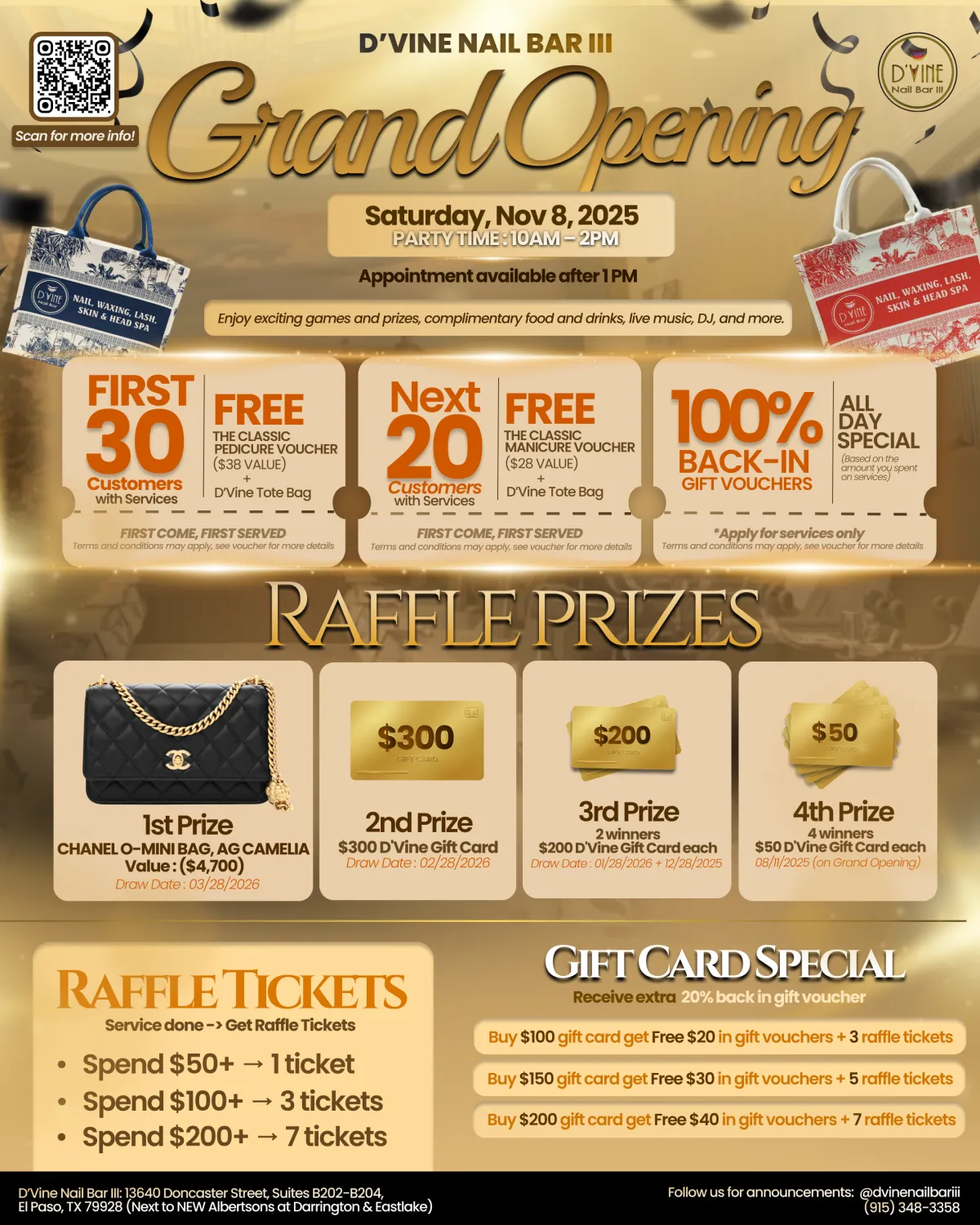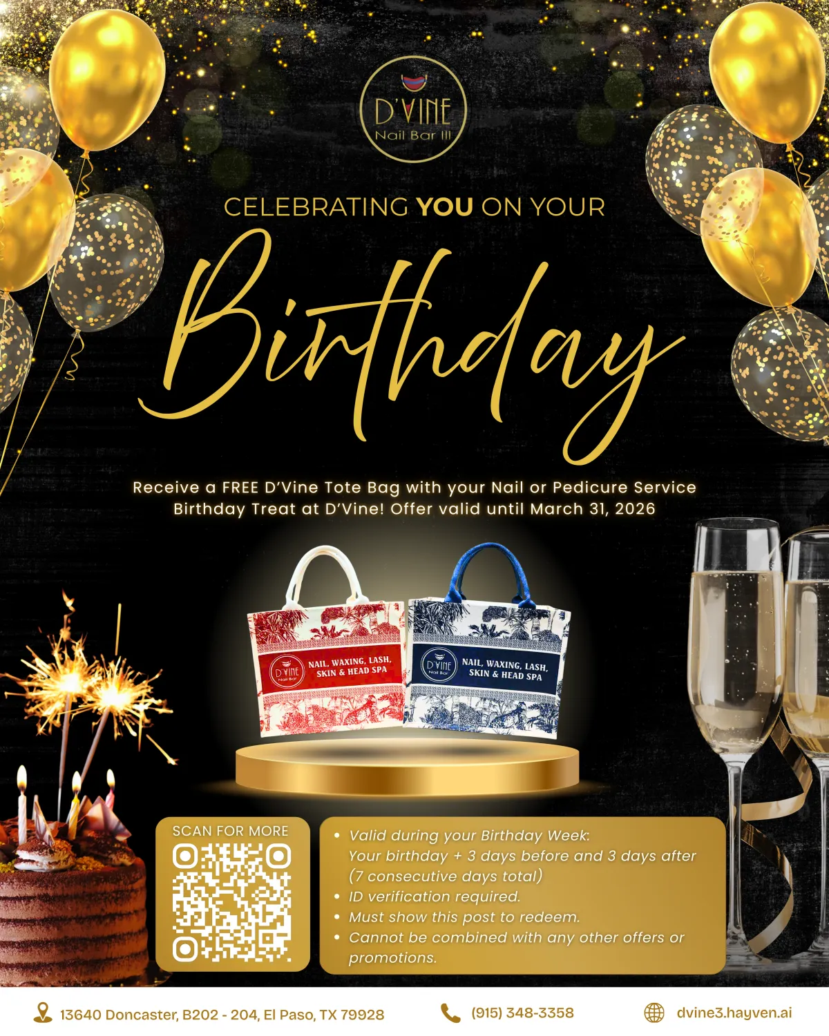 Experience top-notch nail services and spa treatments at DVINE NAIL BAR 3 in El Paso, TX. Enjoy beauty, relaxation, and expert care in a clean, welcoming environment. Visit us today!